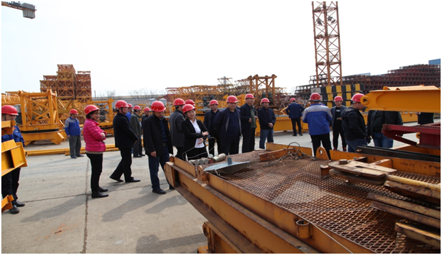 技術(shù)人員陪同質(zhì)安中心主要領(lǐng)導(dǎo)和各單位負(fù)責(zé)人參觀了大漢股份的塔機(jī)維修車(chē)間。
