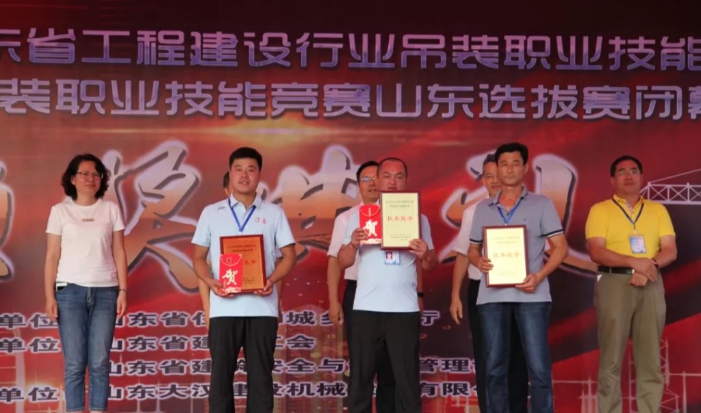 經(jīng)過(guò)激烈的角逐,“大漢杯”山東省工程建設(shè)行業(yè)吊裝職業(yè)技能決賽暨2019全國(guó)競(jìng)賽山東選拔賽圓滿(mǎn)閉幕。16支參賽隊(duì)75名專(zhuān)業(yè)選手通過(guò)理論考試和實(shí)操比武,山東濟(jì)南市代表隊(duì)、青島市代表隊(duì)、日照市代表隊(duì)分別摘得技能競(jìng)賽團(tuán)體獎(jiǎng)前三強(qiáng)。山東大漢建設(shè)機(jī)械股份有限公司獲得山東省建設(shè)工會(huì)、山東省建筑安全與設(shè)備管理協(xié)會(huì)頒發(fā)的“突出貢獻(xiàn)獎(jiǎng)”。來(lái)自濟(jì)南市代表隊(duì)的李寶順從參賽的眾多塔機(jī)頂尖高手脫穎而出,憑借精湛的技術(shù)和穩(wěn)定的臨場(chǎng)發(fā)揮,摘得本此吊裝大賽第一名的桂冠,并獲得由山東省總工會(huì)授予的“山東省五一勞動(dòng)獎(jiǎng)?wù)隆?;?jì)南市代表隊(duì)的劉順卿、董波,日照市代表隊(duì)的李高華分別獲得二等獎(jiǎng);青島市代表隊(duì)的馬云勝等15名選手獲得三等獎(jiǎng)。