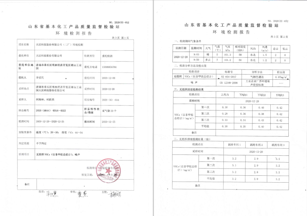 2020年第四季度環(huán)境檢測報告